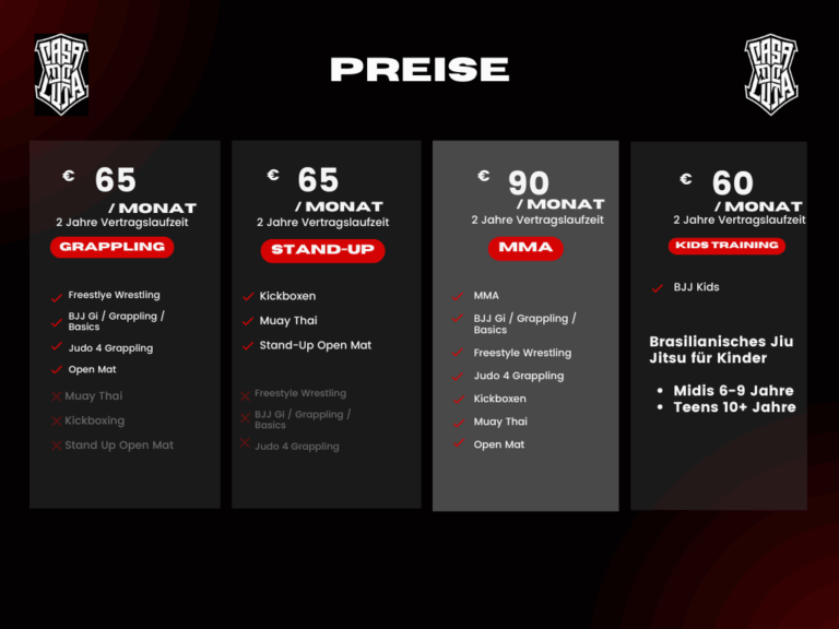 Ein Drop-In ist für 25,00€ pro Einheit möglich. Ihr habt Interesse an Privatstunden, Teamevents, Kleingruppentrainings oder Firmenseminaren? Richtet eure unverbindliche Anfrage an contact@casadeluta.com.